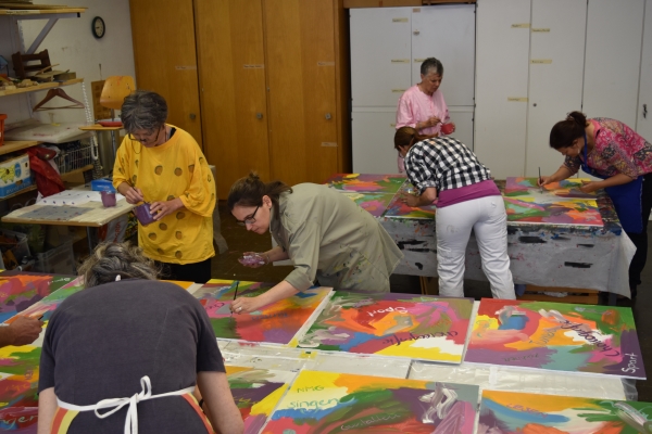 Unter meiner Anleitung malen Sie gemeinsam ansprechende Bilder für Ihre Büros, Empfangshallen, Flure, Kantinen, etc